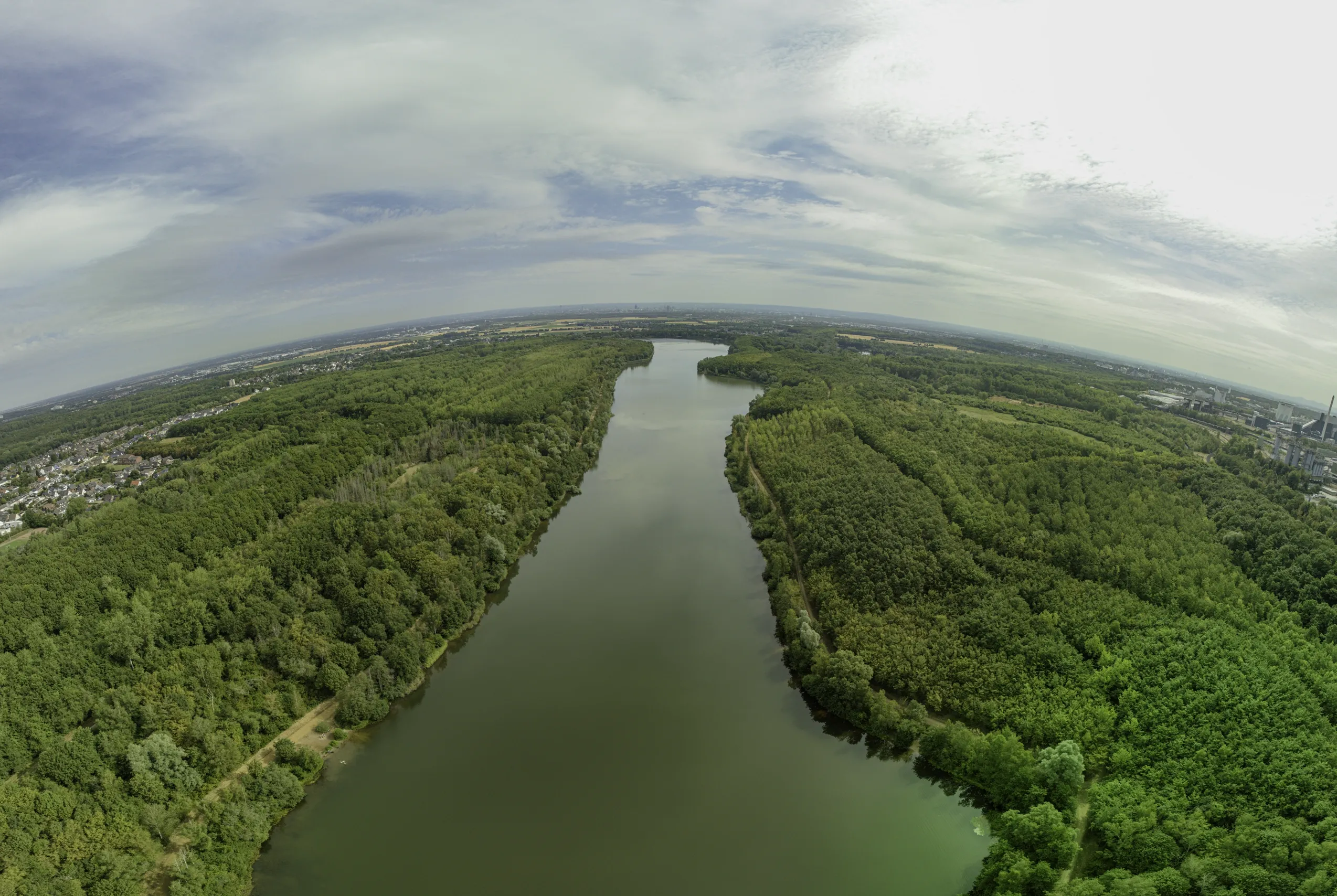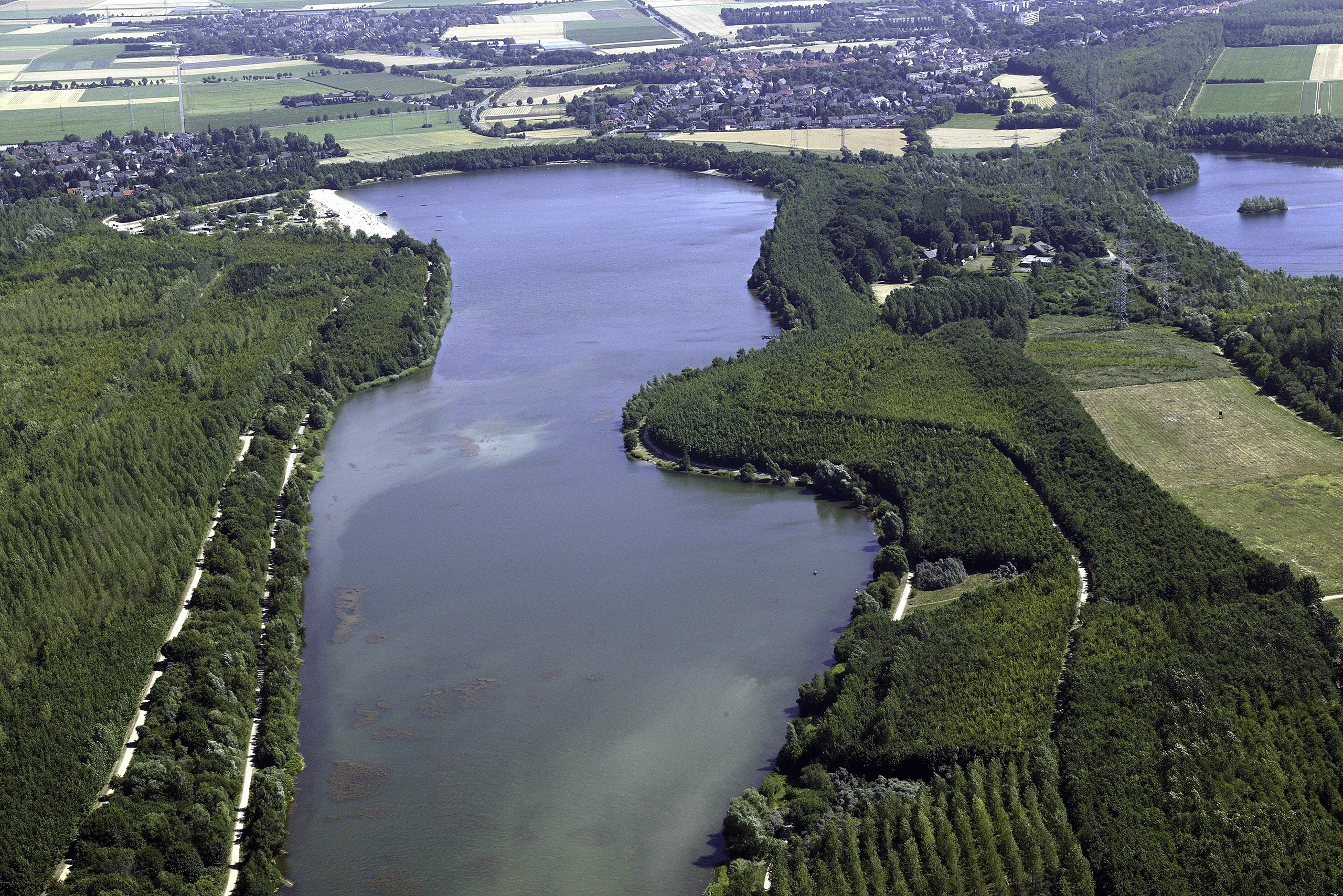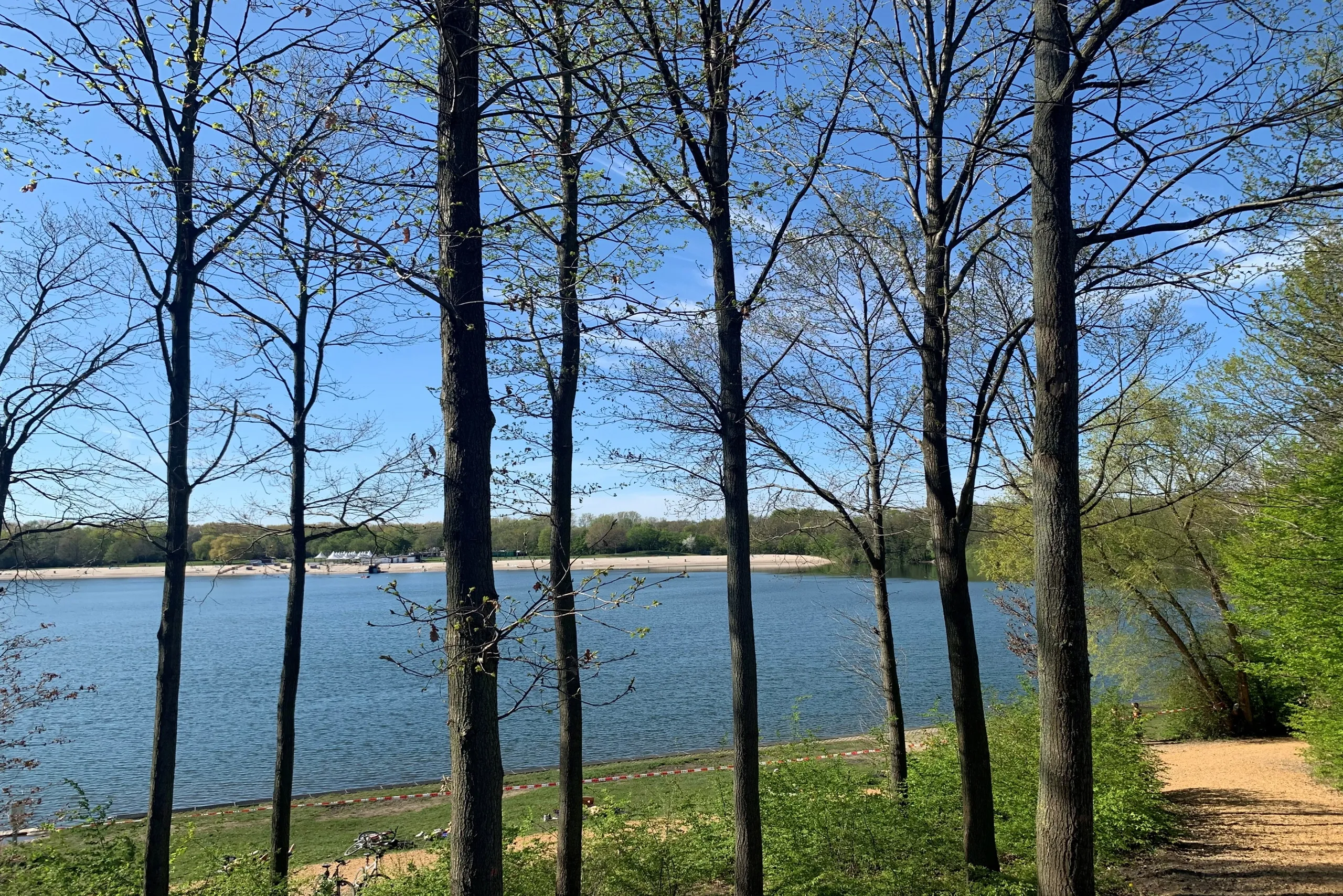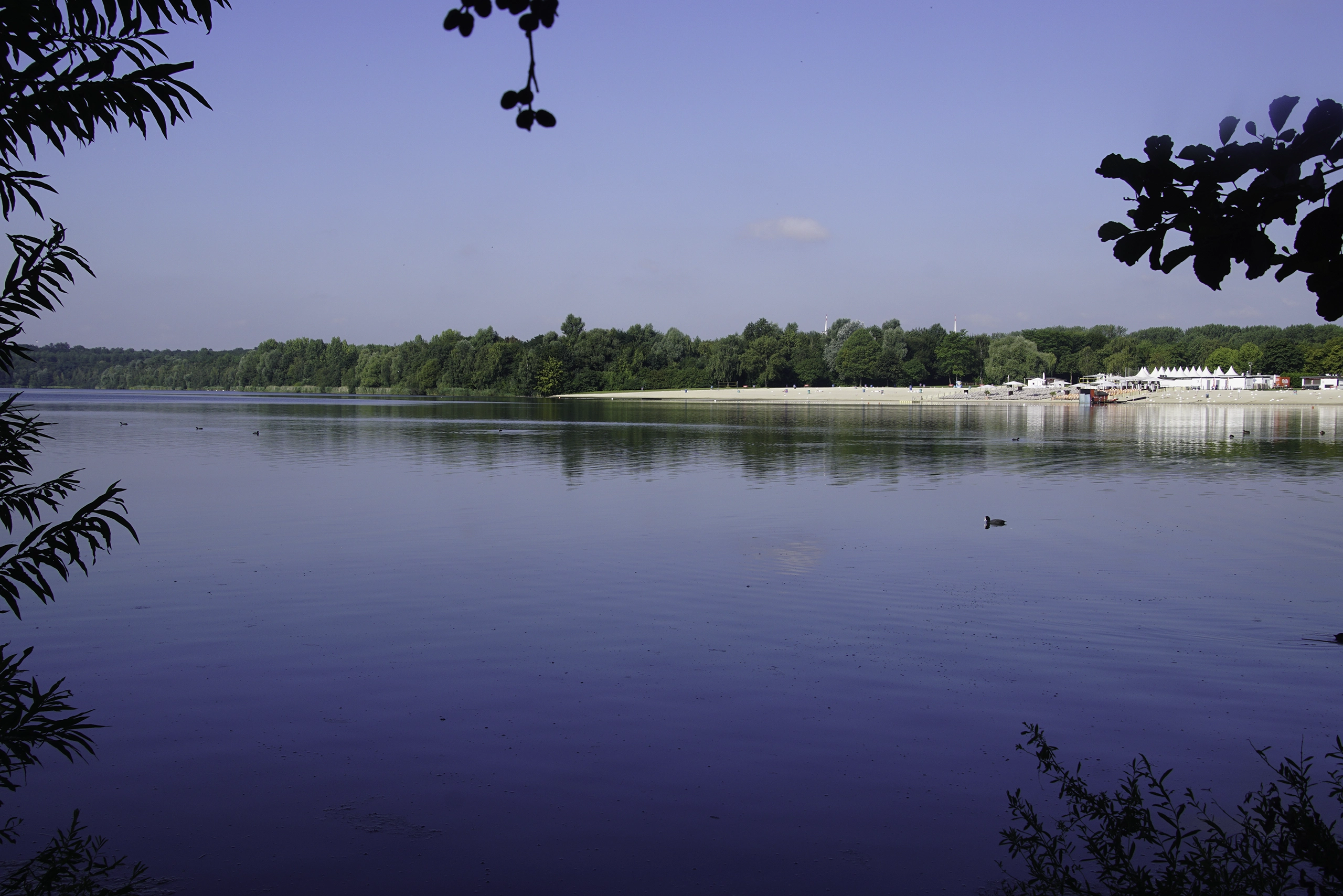 Der See wurde so angelegt das sechs Regattabahnen nebeneinander passen und so Sportwettfahrten veranstaltet werden könnten.